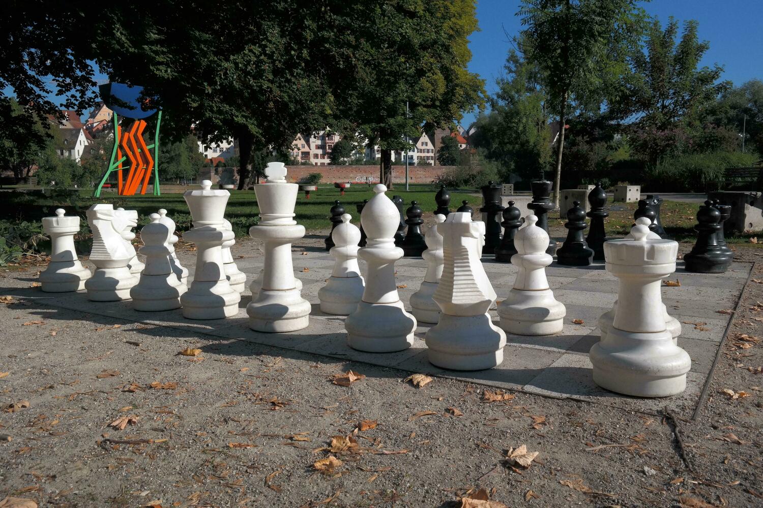 Creació d’un tauler gegant d’escacs a un indret del poble amb figures gegants de fusta.