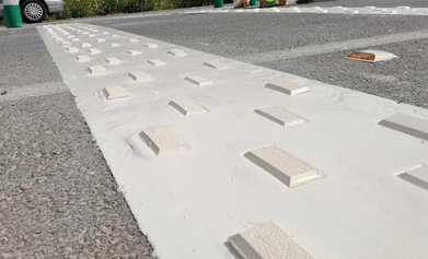 Instalación de bandas rugosas en la calzada de diferentes calles del polígono, que avisan a los conductores de que hay que reducir la velocidad.